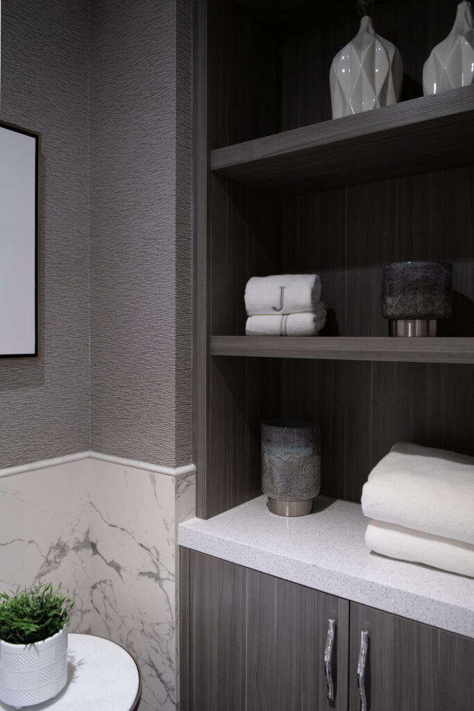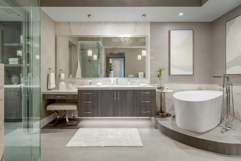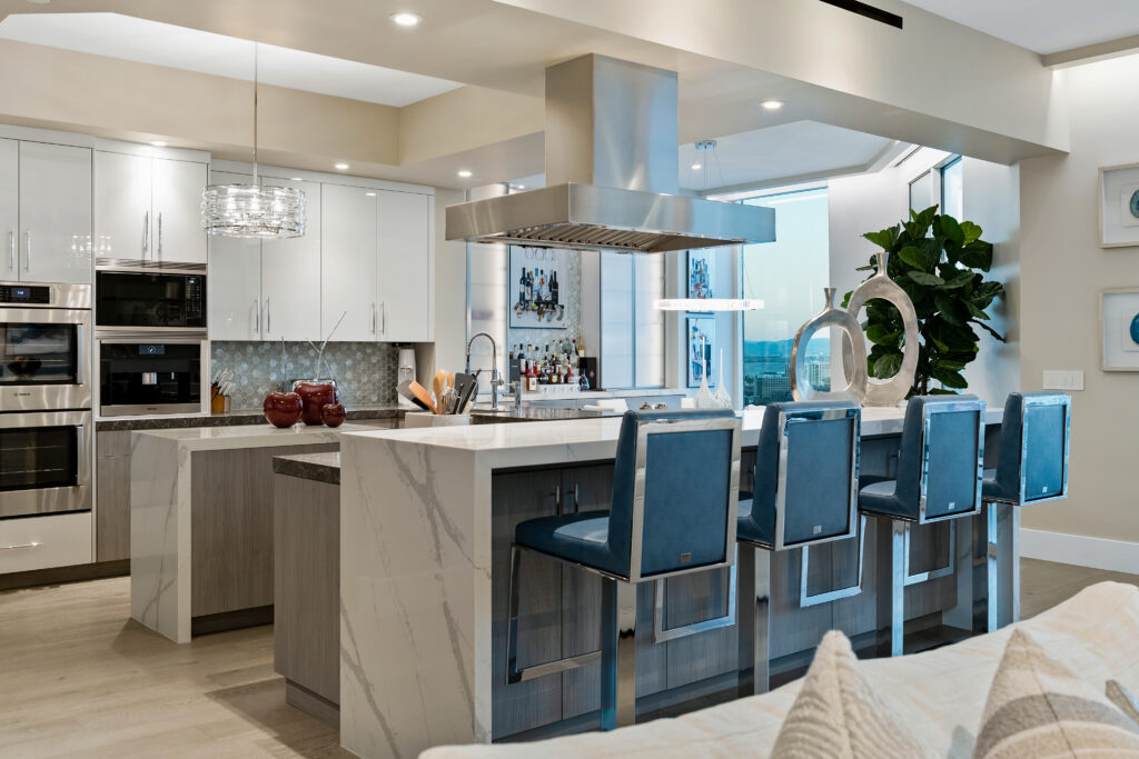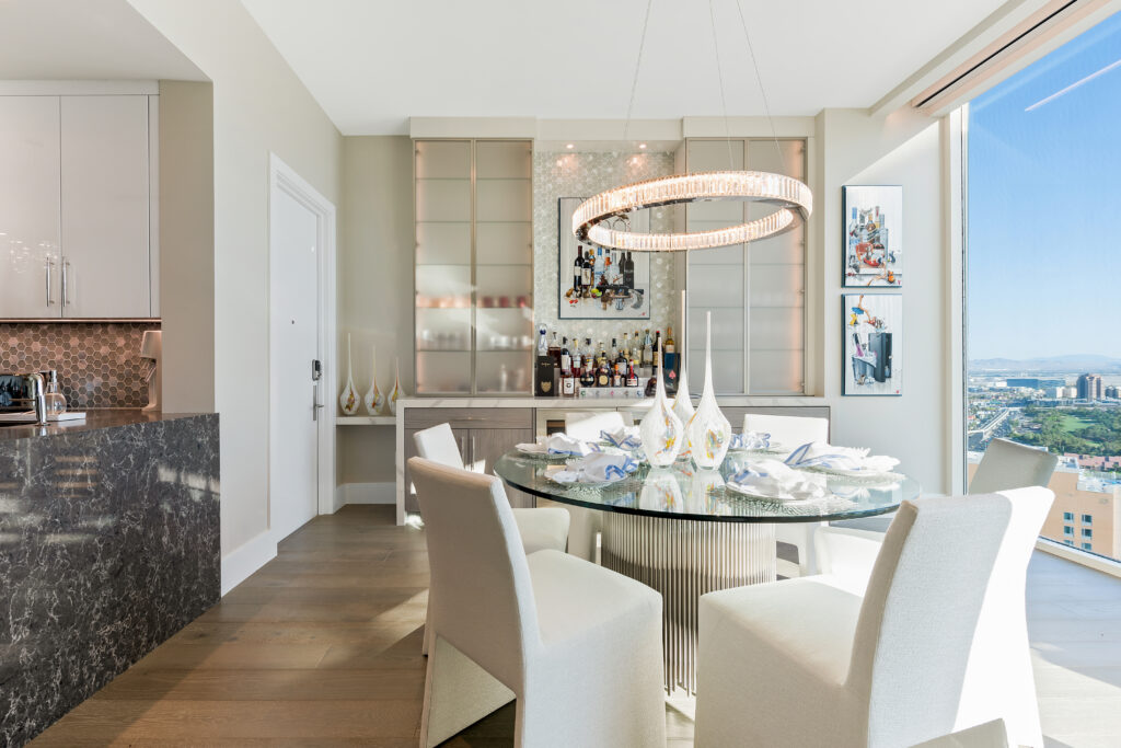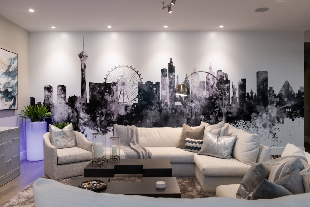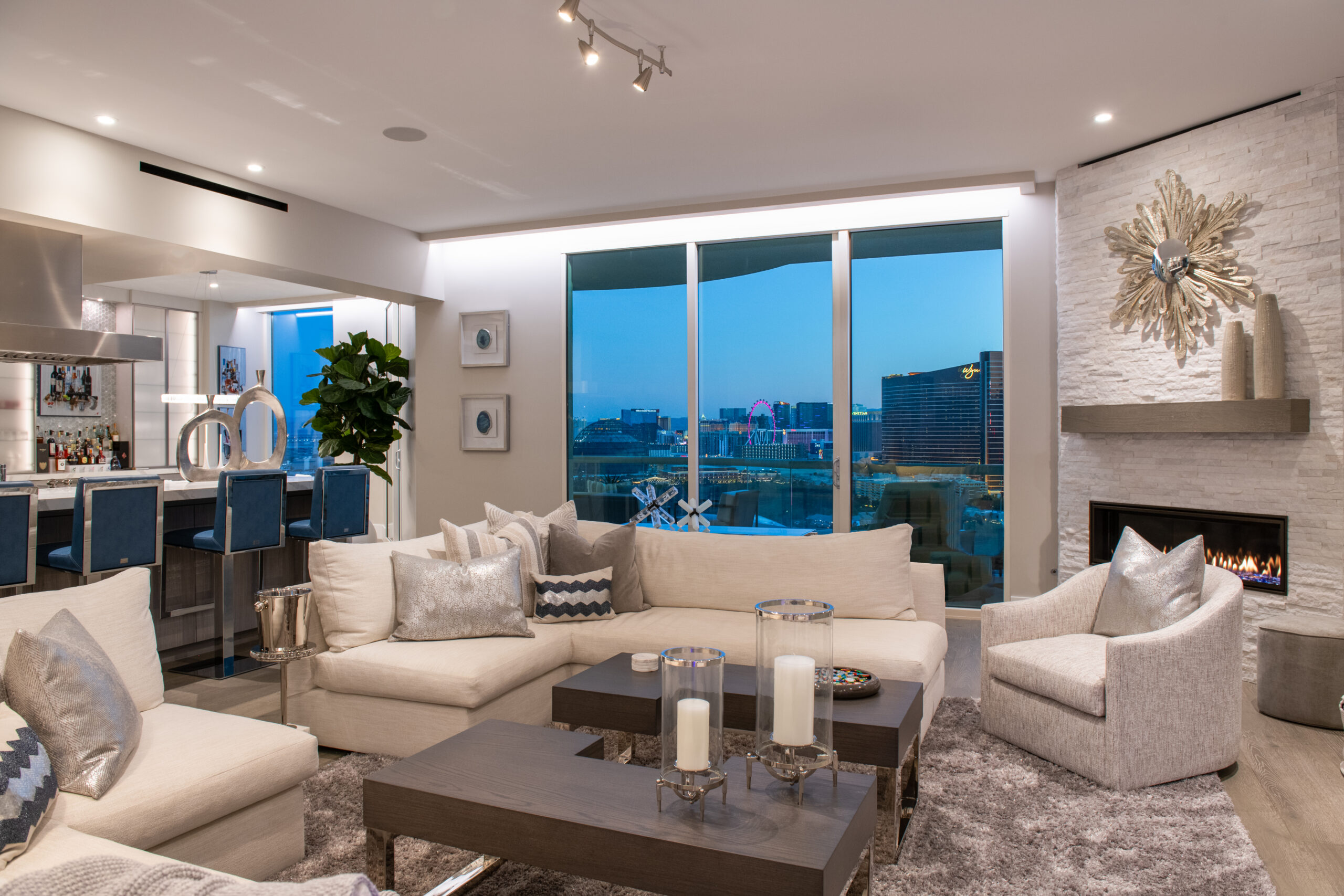 This stunning 2,800 sq. ft. high-rise condo captures the energy of the Las Vegas Strip while offering a private, sophisticated escape. Designed as a seasonal retreat, it transforms classic Vegas style into sleek contemporary elegance. A reimagined kitchen, bathroom, fireplace, and ceiling design set the stage, while a custom Las Vegas mural brings the city’s vibrancy indoors. Luxe materials, bold finishes, and dynamic LED lighting create a dazzling yet refined ambiance – perfect for living the high-rise dream in true Vegas fashion.